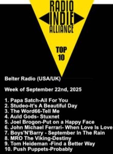 Boys'N'Barry are thrilled that our song September In The Rain” polled as #2 on the Sweet Sunday Sounds on VALLEY FM 89.5 (Australia) Isaac Banks Top 10 Tracks (16 Sept 2025). Written by Clare Steffen and Barry Geldzahler, produced by the Kevin Fisher